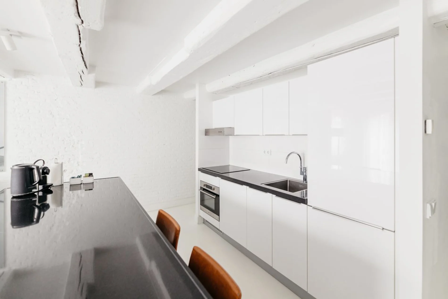 There is also a kitchen, equipped with a dishwasher, oven and microwave. A refrigerator and stovetop are also available, as well as a coffee machine..