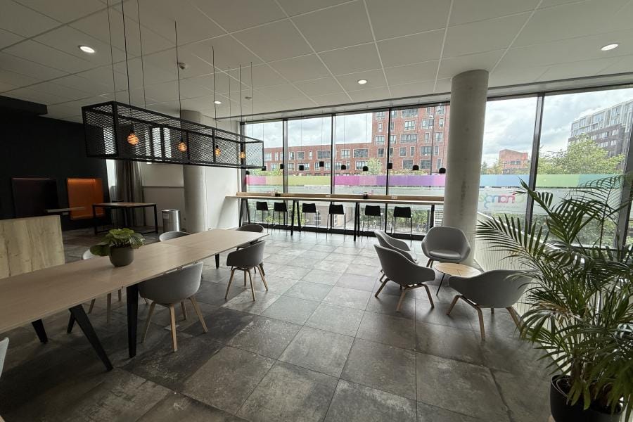 Je komt binnen met een pasjessysteem, neemt de lift naar je eigen studio óf loopt via de trap het gezellige atrium in. Daar ontmoet je medebewoners, werk je aan je doelen of plof je neer met een kop koffie.