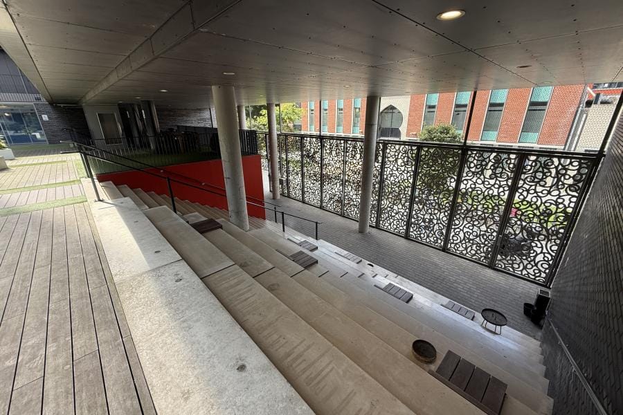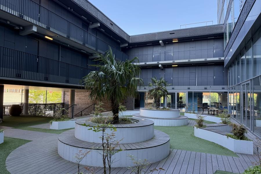 Het gebouw heeft een atrium waar je kunt werken en genieten van een snack uit de automaten. Naast het atrium ligt de gemeenschappelijke woonkamer, die uitnodigt om te ontspannen, een film te kijken of een spelletje te spelen met je medebewoners.