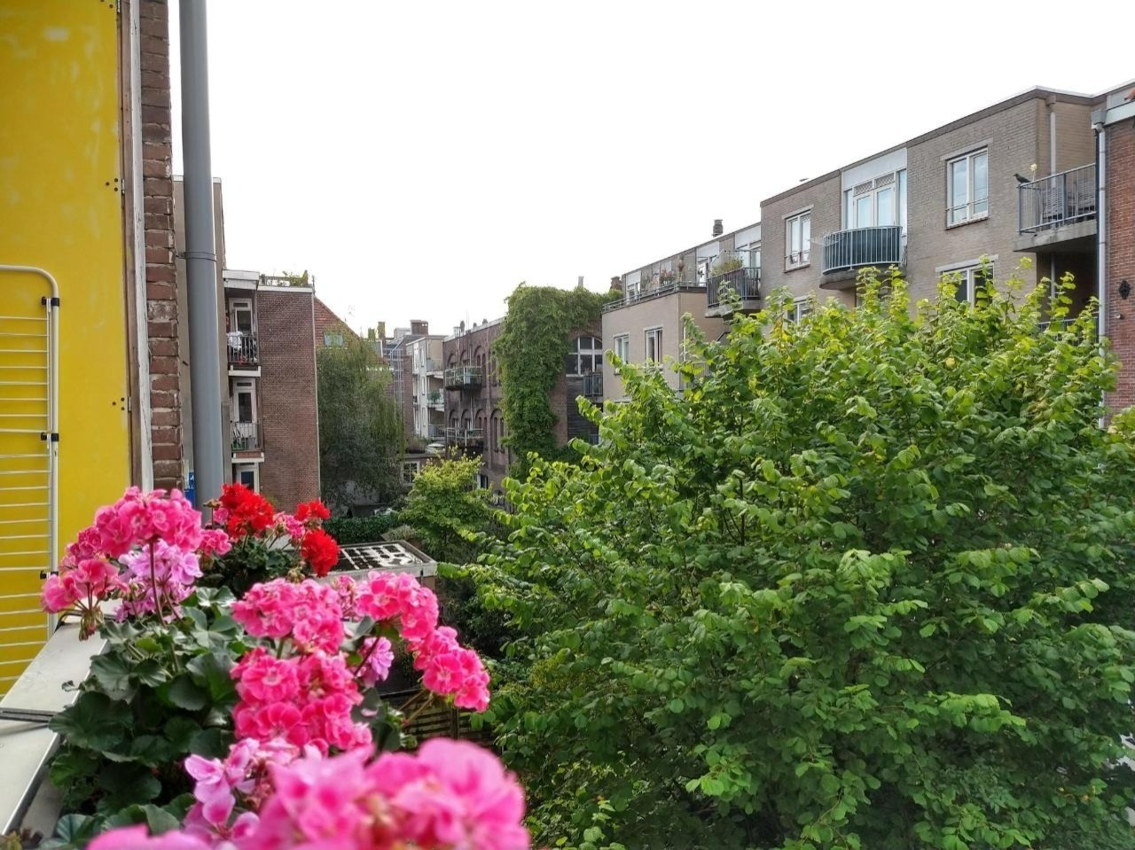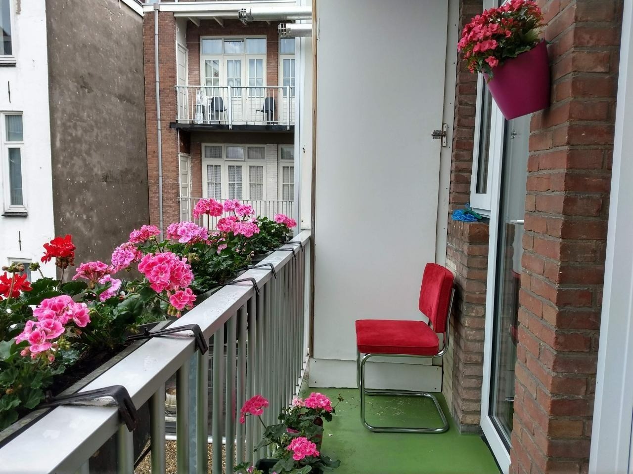 Het appartement is op de derde verdieping en heeft een leuk klein balkonnetje met bloemen.