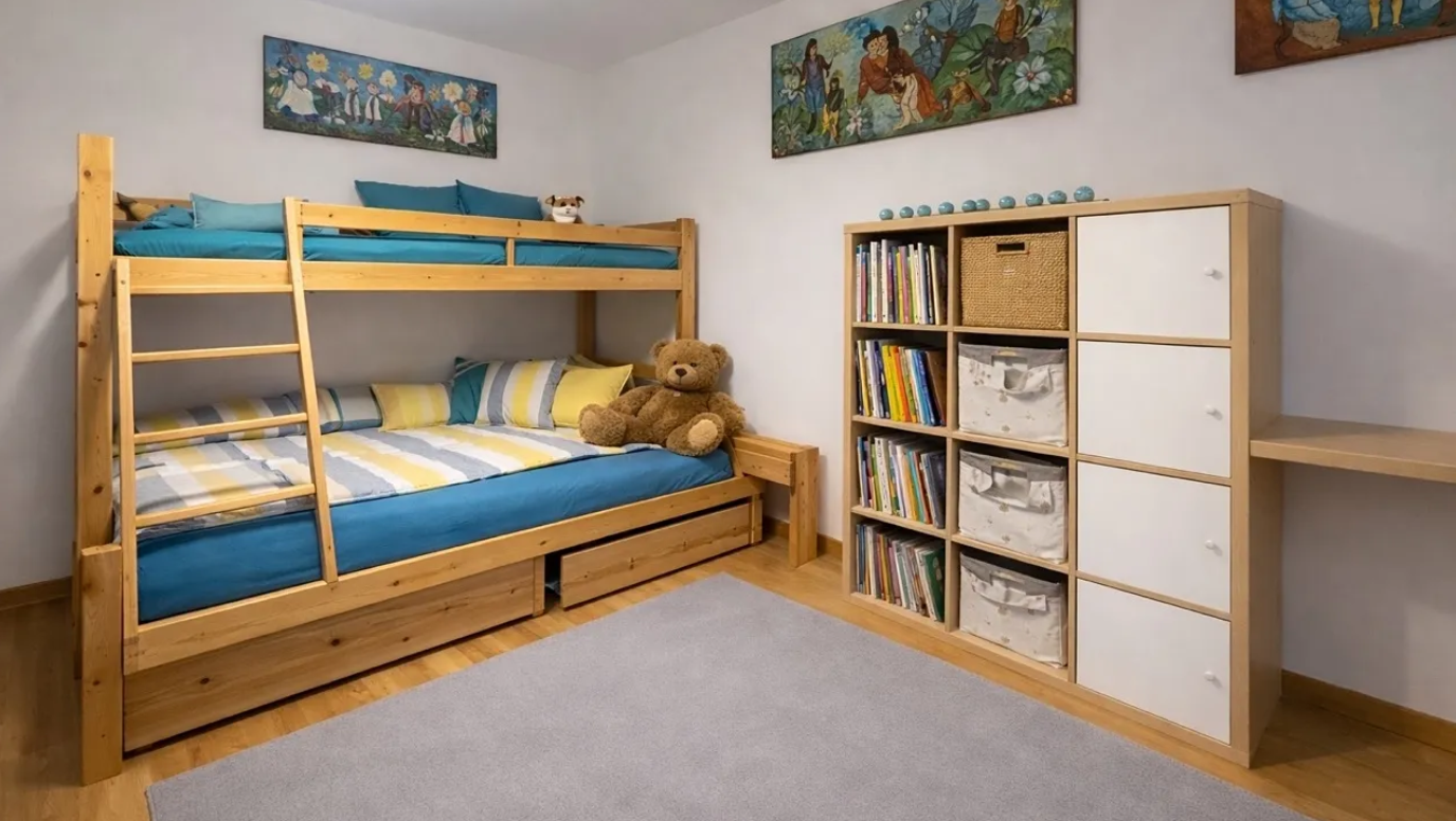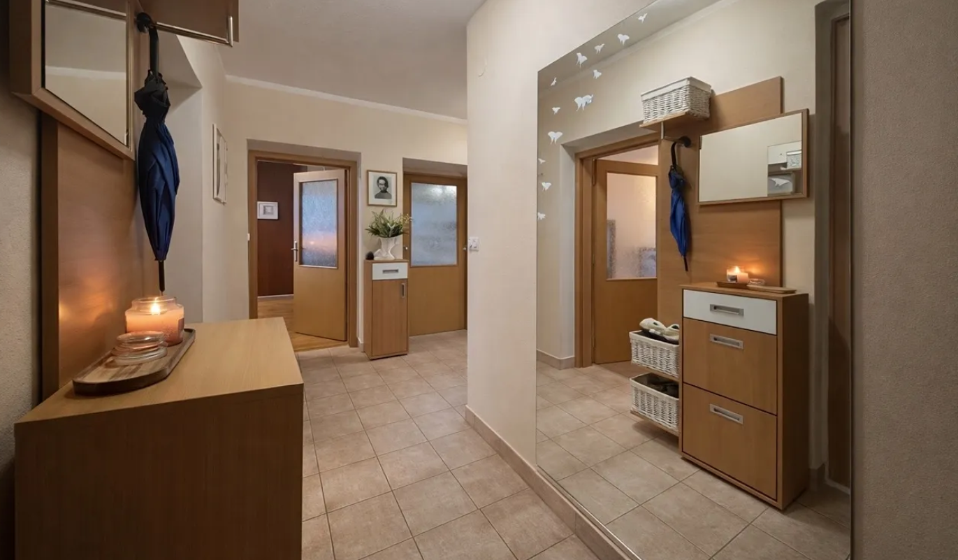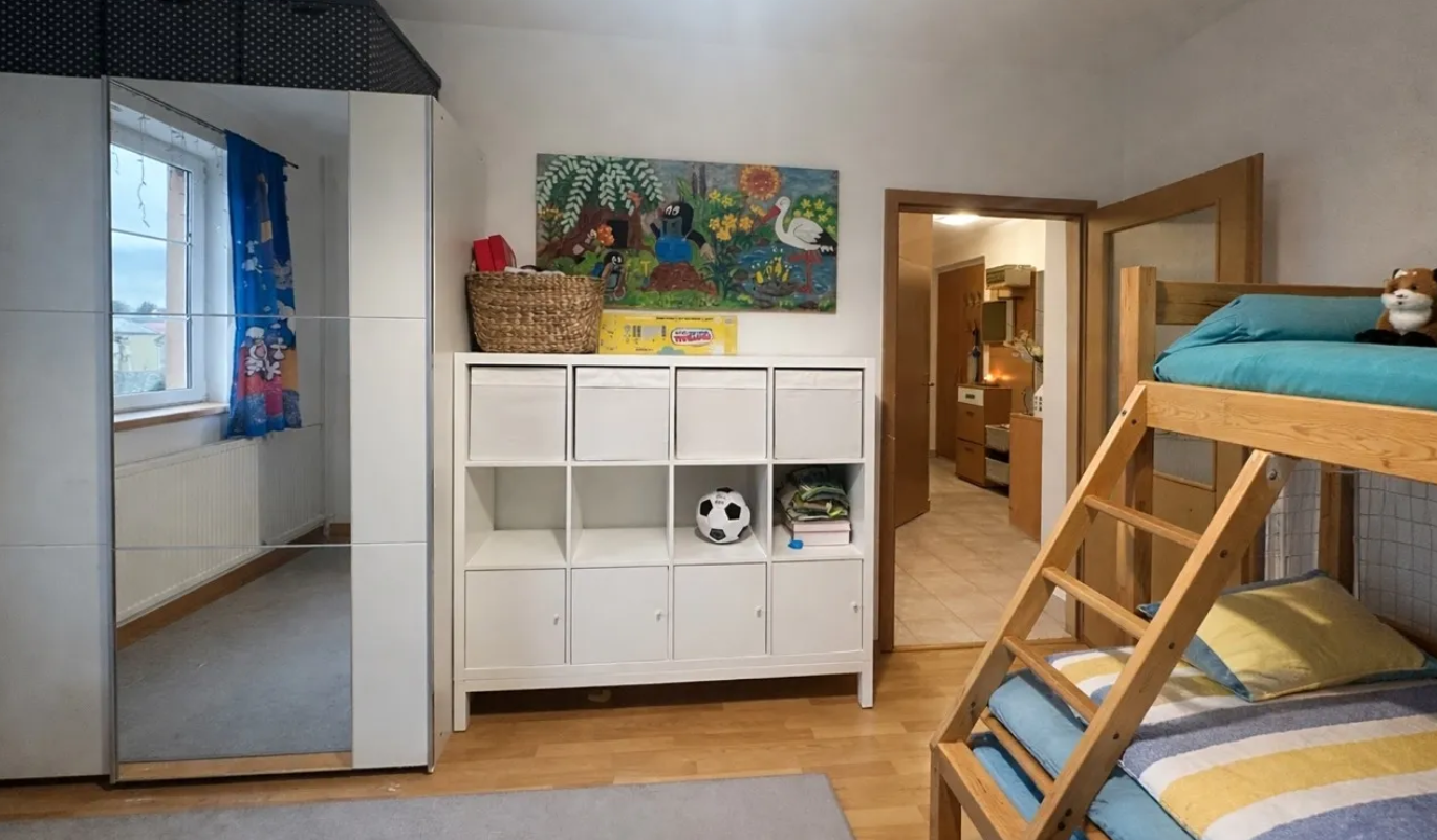 Het appartement biedt een ruime oplossing, geschikt voor gezinnen met kinderen.