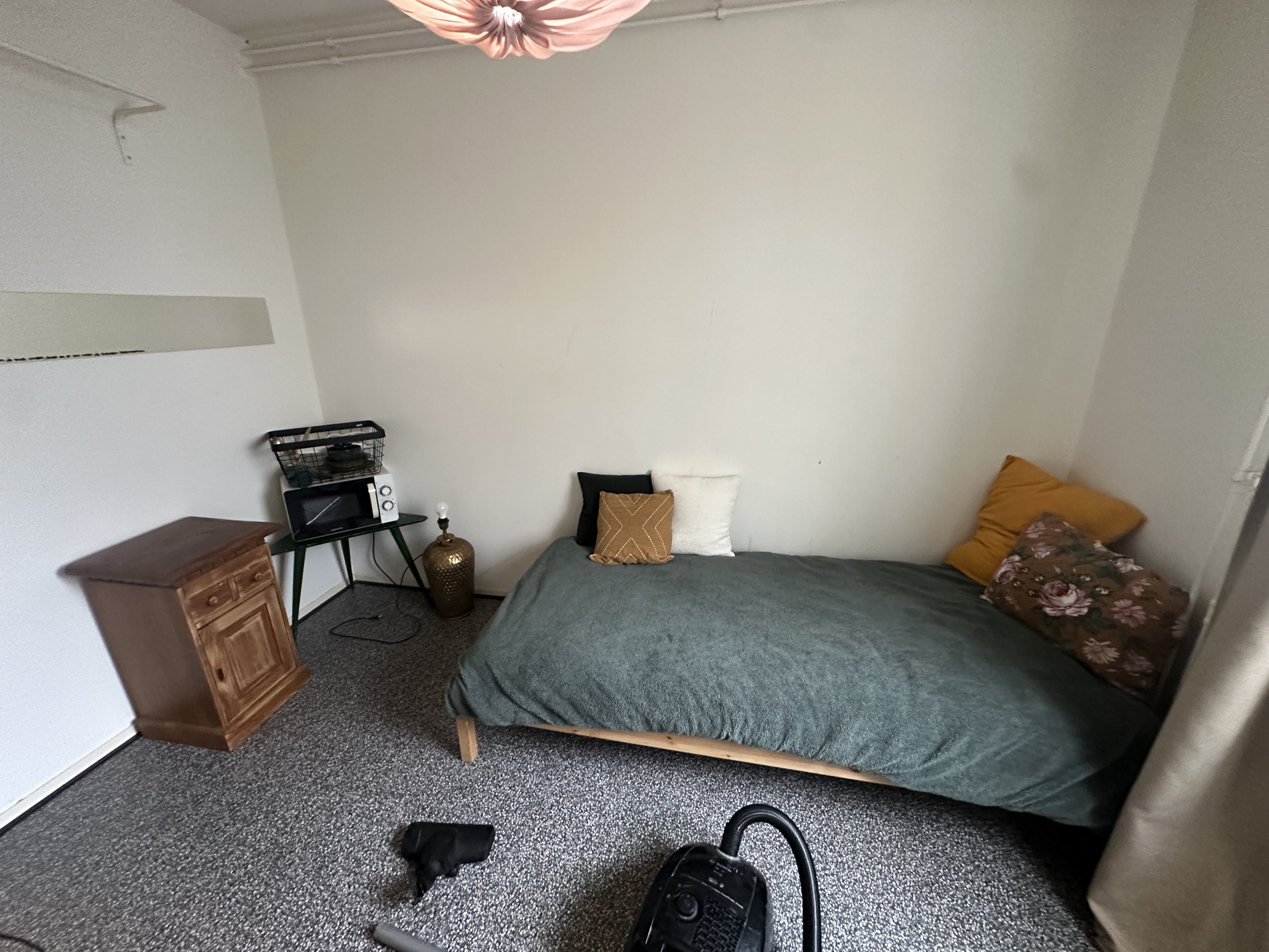 Voor een periode van maximaal 3 maanden. Inschrijving is mogelijk. De kamer is voorzien van een bed, nachtkastje, rek voor kleding, tafeltje, magnetron en een kast voor kleding. Ook heeft de kamer gordijnen en eventueel beddengoed, handdoeken en servies.