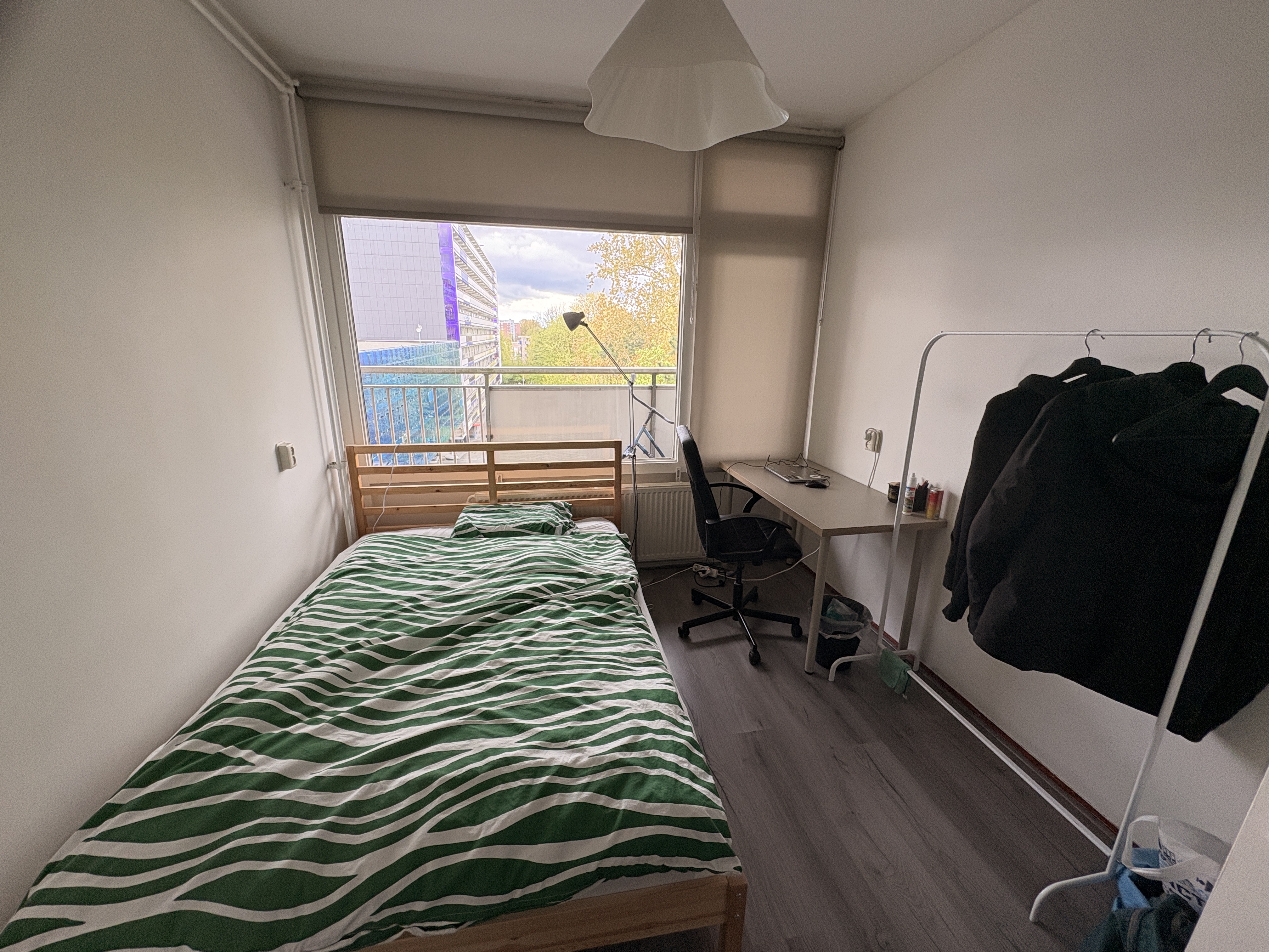 The apartment comes furnished with four bedrooms, 2 living rooms, a spacious balcony, 1 bath and 1 toilet.I’m moving out because my visa in NL is expiring. Time to go home.